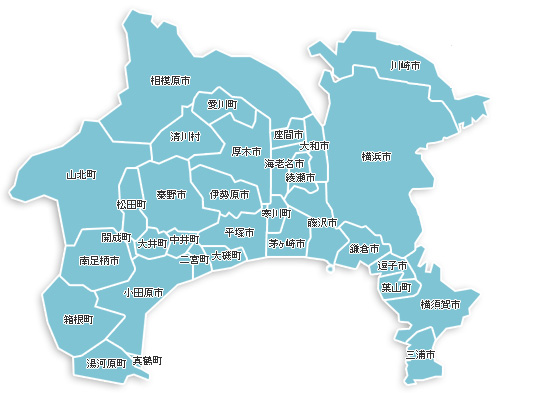 横浜市|川崎市|相模原市|厚木市|大和市|座間市|海老名市|藤沢市|茅ヶ崎市|平塚市|綾瀬市|秦野市|伊勢原市|鎌倉市|逗子市|三浦市|小田原市|南足柄市|愛川町|寒川町 など